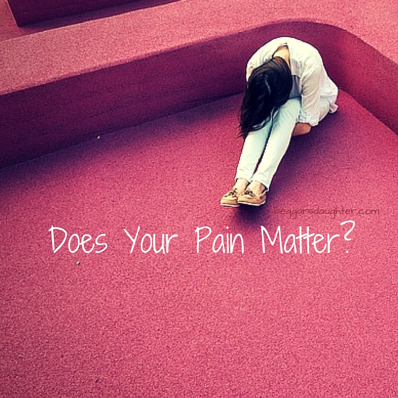 Maybe it’s pain from your past. Maybe it’s how someone has treated you now. Maybe it’s how you treat yourself. It could be the sting of loneliness or the trauma of rape. Whatever it is, we’ve fallen into this trap that tells us it doesn’t matter. We need to be stronger. We need to rejoice and trust. We need to remember that “it could always be worse.”
